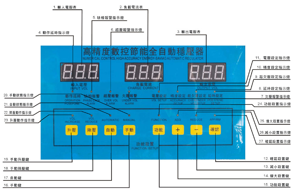 3、客戶選裝:欠、過壓保護功能、旁路缺相、錯相保護功能、市電、穩(wěn)壓轉(zhuǎn)換功能、分相、分調(diào)功能等.